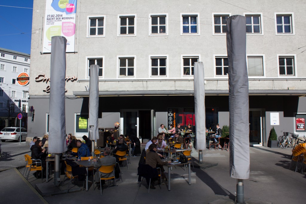 Das Republic in Mitten der Altstadt war früher das Salzburger Stadtkino. Seit über 10 Jahren ist es nun aber schon ein Ort des bunten Treibens und der Kunst, Kultur und Kommunikation. Hier kann man nachmittags gemütlich einen Kaffee in der Sonne vor dem Lokal genießen, abends auf ein Bier kommen oder sich Kabaretts, Lesungen und Theatervorstellungen ansehen. Das aktuelle Programm findet man in den monatlichen Programmheften oder online.