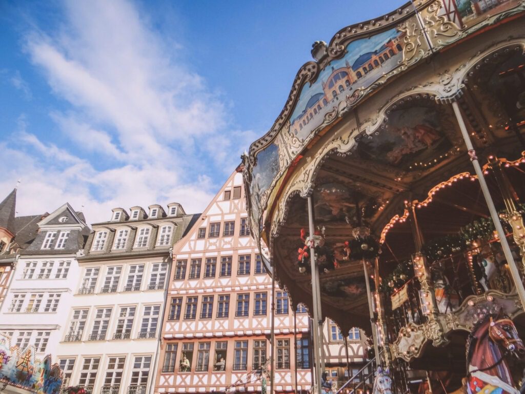 Der Star der Show ist natürlich der Platz am Römerberg, auf dem von Anfang November an eine 33-Meter-hohe europäische Fichte steht, deren beeindruckender Hintergrund das Frankfurter Rathaus bildet. Fun Fact: Der Baum ist 124 Jahre alt. Am Römerberg findest du außerdem ein nostalgisches, zweistöckiges Karussell, mit dem Fahrgäste jeden Alters ein paar Runden drehen dürfen.