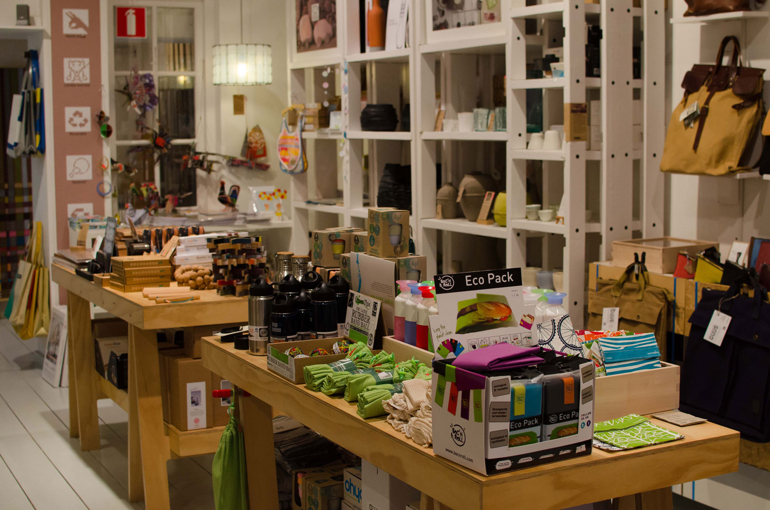 Guss is a relaxed and easy going store which offers many creative products made of ecological materials. But Guss also sells bags made of firehoses or truck plane. The store has a good selection of handcrafted paperworks for kids.
