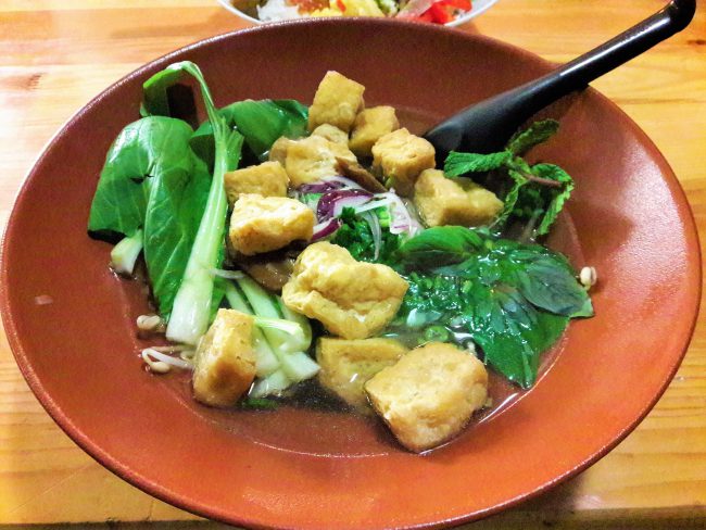 The fresh herbs and crunchy vegetables in my fabulous glass noodle soup are sourced from neighbouring businesses to keep the delivery routes short – which wins extra brownie points in my book. And the music! Totally untypically, you hear soft rock from the 1980s from the boxes and I realise it feels like … home!