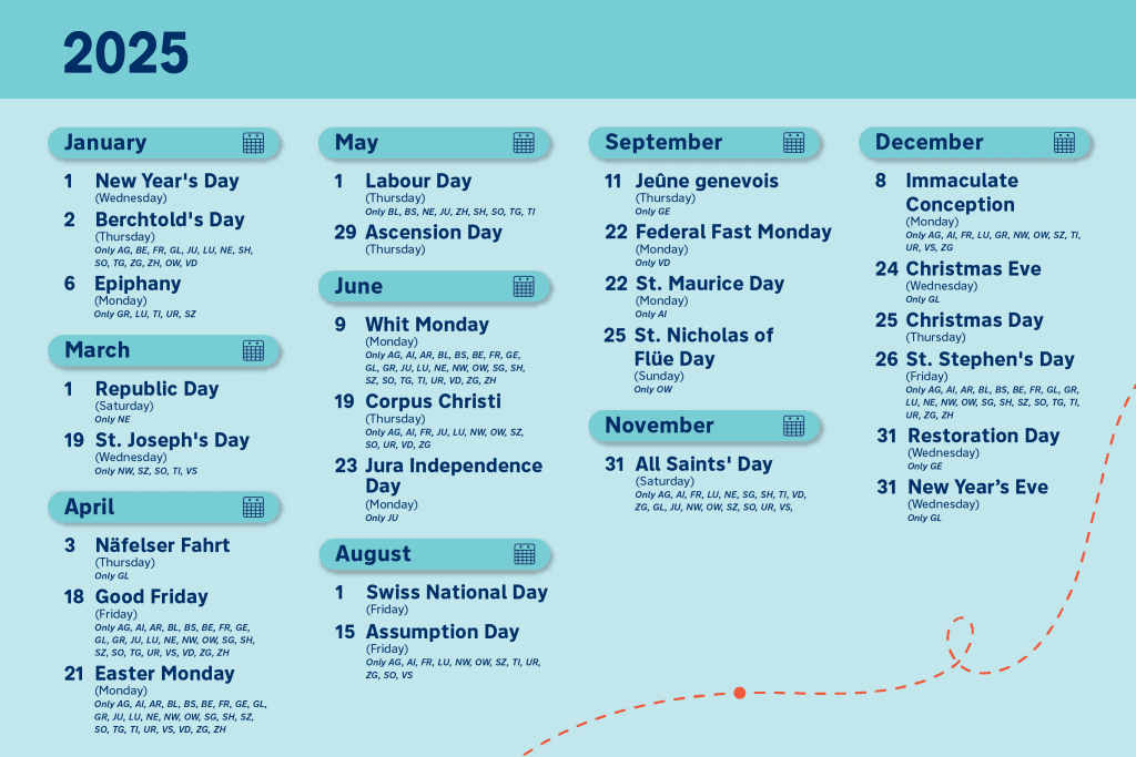 Whether you’re planning a winter getaway, a springtime hike in the Alps, or a festive Christmas in Switzerland, knowing the public holidays can help you make the most of your trip.