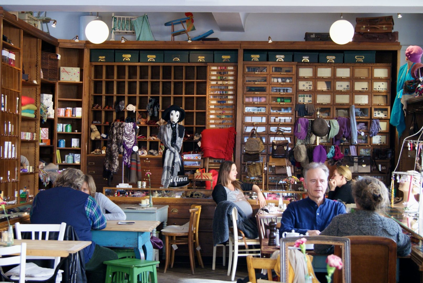 The last paintwork of tables and chairs is already quite a while ago, when the cash register opens there are loud ringings and chatter filling the space between the old apothecary cabinets from past decades. The cute Ladencafé Marais is a piece of art, in which one feels transported back to the Paris of the 1920s. In addition to coffee, salads and soups there are also small decorative accessories to buy, old postcards, jam and jewelry. Truely a special place!
