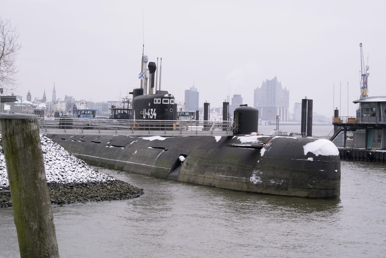Whilst the big museum ships Rickmer Rickmers and Cap San Diego are visible from afar, U-Boot 434 can only be distinguished at second glance on an overcast day. Big and grey, it sits at its berth at the St. Pauli fish market, displaying the technology of the not-so-distant past.