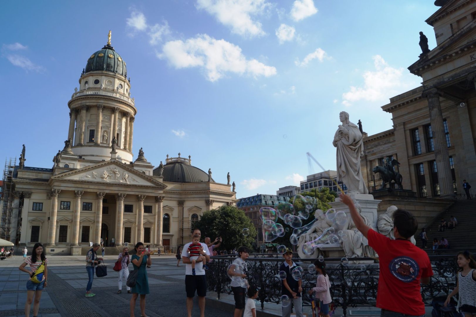 When the hot summer’s day is coming to an end it’s time for a refreshing drink. My favourite spot? The Gendarmenmarkt! Surrounded by the charming and beautiful architectural backdrop of the German Cathedral, the concert hall and the French Cathedral, by creative soap bubble artists and children playing nearby, my mum and I enjoyed a cool Aperol Spritz while soaking up the last of the sun. The perfect moment!