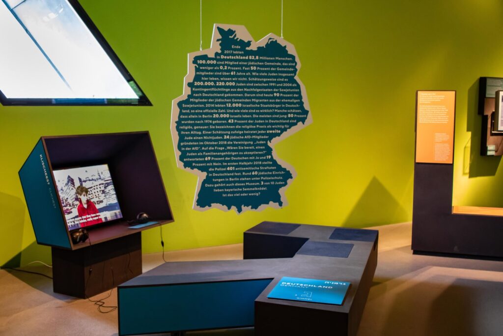 But it is not only the Holocaust which is the subject here. Focus is also placed on the life of German Jews today. In the current exhibition “A is for Jewish” (which runs until the end of September 2019), young and old can acquaint themselves with German-Jewish everyday life. This is done by means of diverse colorful information boards, charts and exhibits. You will learn for example, what makes food kosher and what Bar Mitzvah is.