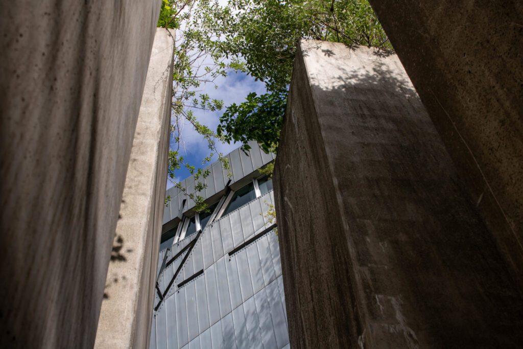 Yet the Jewish Museum in Berlin has not only become known for what lies within, but also because of its exterior. The architecture of the building is impressive and also depressing at the same time. Next to the Baroque entrance the new building stands out – literally. Architect Daniel Liebeskind uses the many pointed corners, extremely high ceilings, cold concrete, titanium and intersecting lines to tell the German-Jewish story.
