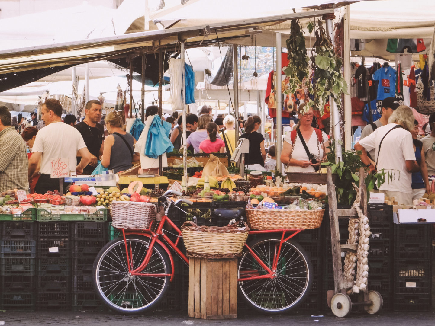 Auf dem Campo de‘ Fiori das bunte Treiben beobachten, über den Dächern Romas ein Panino essen und die Abendstunden in Trastevere genießen.