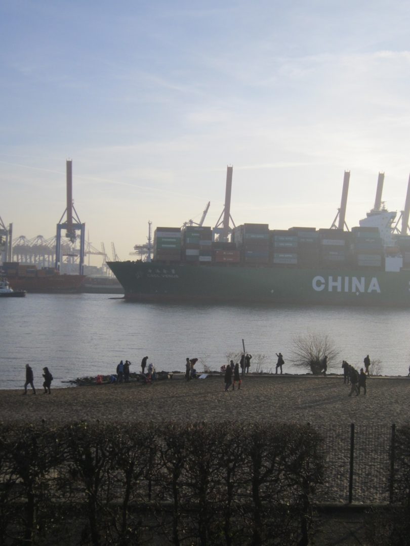 Zu Fuß seid Ihr vom Hotel aus in nur wenigen Minuten am Altonaer Balkon. Während Ihr die beeindruckende Aussicht über Elbe, Hafen und Köhlbrandbrücke genießt, können die Kinder den hier liegenden Spielplatz erkunden. Dann geht es los, runter zur Elbe. Wer immer Richtung Westen geht, kommt erst an einer Reihe hübscher Restaurants mit tollen Sommerterrassen vorbei und steht dann am Elbstrand – dem größten Sandkasten Hamburgs. Geht Ihr jetzt noch etwas am Wasser weiter, kommt Ihr zur Strandperle. Der kleine Imbiss besteht eigentlich nur aus einer Ausgabestation und einer Terrasse. Trotzdem genießt er seit Jahrzehnten Kultcharakter und der Strand hier ist bei gutem Wetter rund ums Jahr beeindruckend gut besucht. Spätestens jetzt kommt Urlaubsstimmung auf: Mit den Füßen im Sand und einem je nach Jahreszeit kühlen oder wärmendem Getränk in der Hand genießen Mama und Papa den Blick auf die Elbe und die vorbeifahrenden Schiffe, während der Nachwuchs im Sand buddelt. Wer mehr über die riesigen Containerschiffe wissen will, die von hier aus in den gegenüberliegenden Hamburger Hafen einfahren, lädt sich eine App wie „Marine Traffic“ auf sein Smartphone. Hiermit lassen sich blitzschnell alle Daten rund um die Schiffe abrufen.