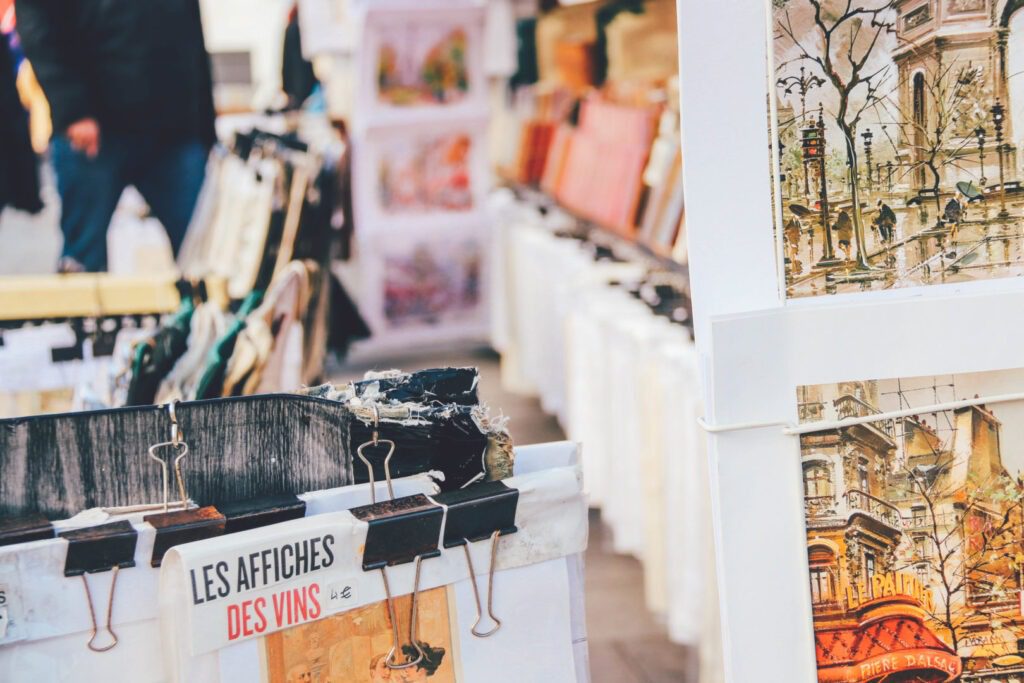 Städtetrip nach Paris: Vintage Kunstdrucke auf einem Straßenmarkt in Paris