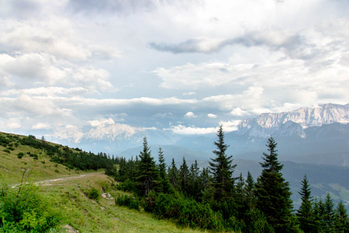 Zur Priener Hütte kommt ihr ausnahmsweise nicht mit der Gondel. Dementsprechend ruhig und entspannt ist dort die Stimmung. Wer hier hochwandert, ist glücklich (und sicherlich etwas müde), angekommen zu sein. Da braucht es eine ordentliche Brotzeit oder einen Kaiserschmarrn, um wieder auf die Beine zu kommen. Die Priener Hütte liegt im Chiemgau, nahe zur Grenze zu Österreich/Tirol. Sie ist urig gemütlich und der Weg dorthin abwechslungsreich. Hinauf führt ein einfacher Forstweg, ca. 700 Höhenmeter und 2,5 Stunden Aufstieg. Wer trittsicher ist, kann auch die ausgeschriebenen Pfade durch den Wald nehmen. Das letzte Drittel des Weges führt über weite Wiesen. Berge, so weit das Auge reicht!
