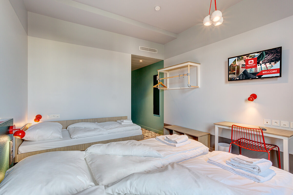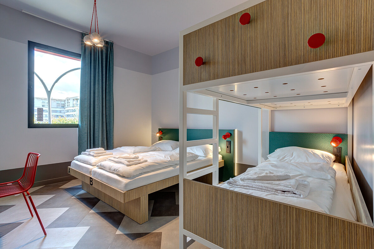 Für bis zu 8 Personen eignen sich die Mehrbettzimmer im MEININGER Hotel Paris Porte de Vincennes ideal als günstige Unterkunft für Gruppenreisen. Gemeinschaftsräume, Spielzone und flexible Verpflegungsmöglichkeiten mit Lunchpaketen, Mittag- und Abendessen sorgen für einen gelungenen Aufenthalt.