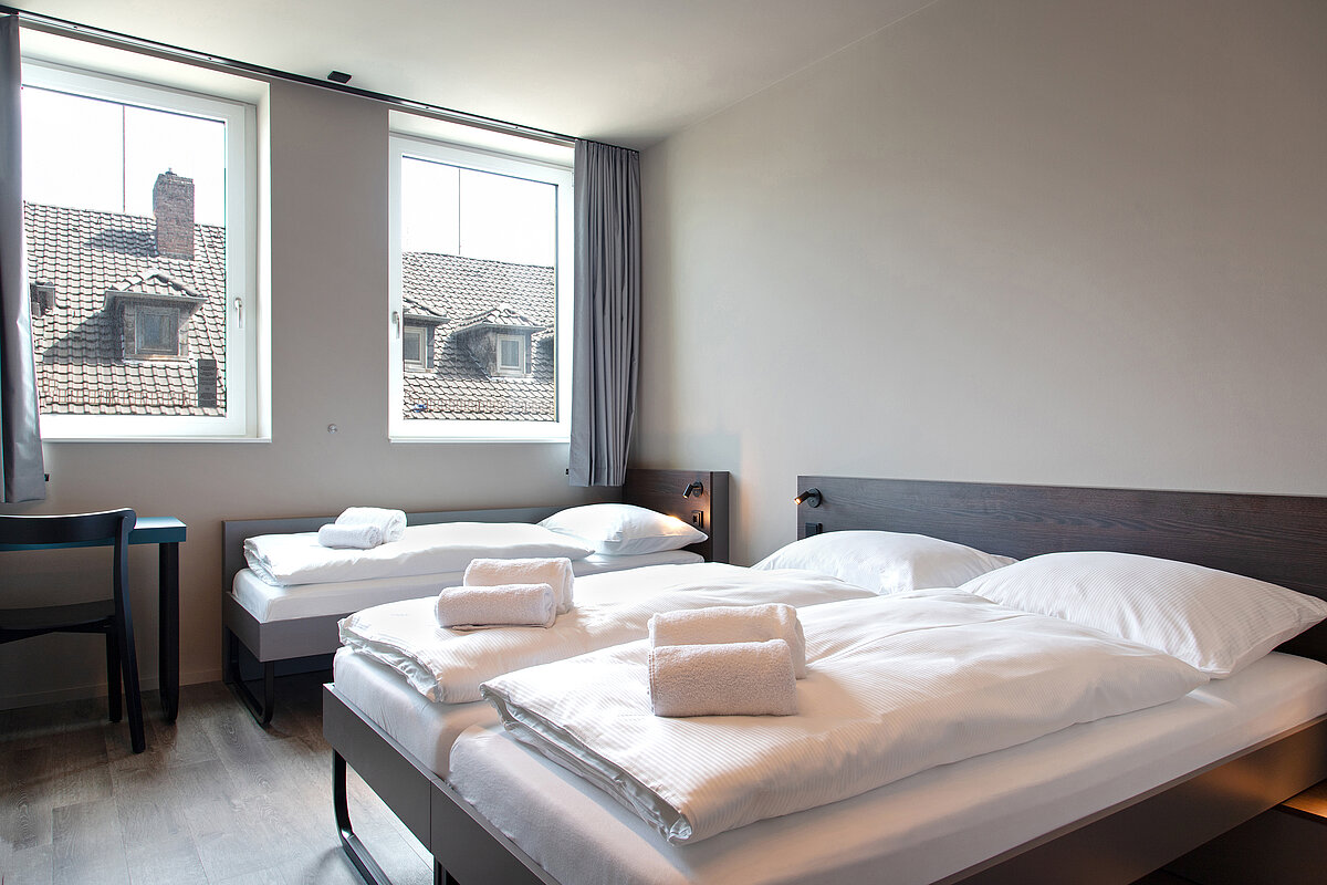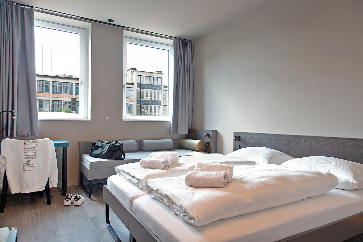 El MEININGER Hotel Bremen Hauptbahnhof ofrece habitaciones múltiples ideales para viajes escolares, asegurando una estancia cómoda para todos los estudiantes. Nuestro equipo amable, disponible 24/7, está aquí para satisfacer tus necesidades, ofreciendo almuerzos para llevar opcionales, máquinas de snacks, una divertida zona de juegos y medidas de seguridad de primera. Con estos detalles resueltos, los profesores pueden relajarse y guiar a sus estudiantes para explorar las vistas de Bremen y respirar el aire fresco junto al río Weser con facilidad.