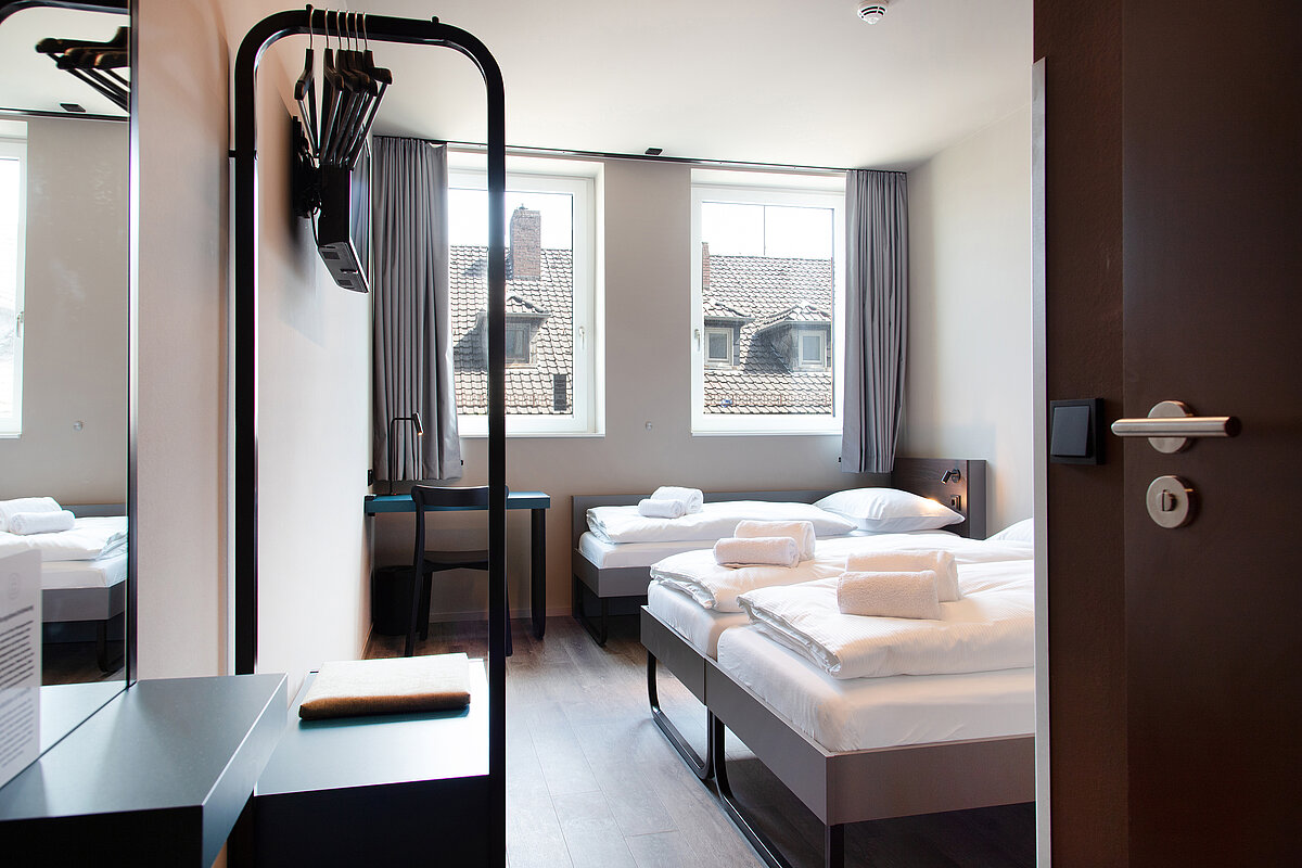 Nuestras habitaciones múltiples son ideales para los que viajan en grupo. Nos ocupamos de toda la logística: servicio amable, recepción 24 h, pícnic opcional, máquinas de snacks, zona de juegos y medidas de seguridad. Tu grupo solo tendrá que disfrutar de la ciudad y del aire fresco del río Weser.