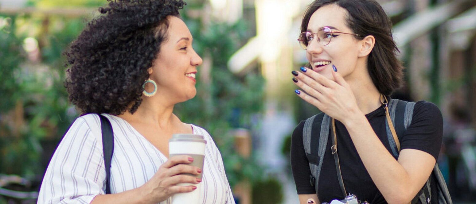 Two friends chatting on a city trip, staying with MEININGER Hotels