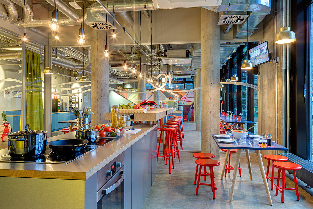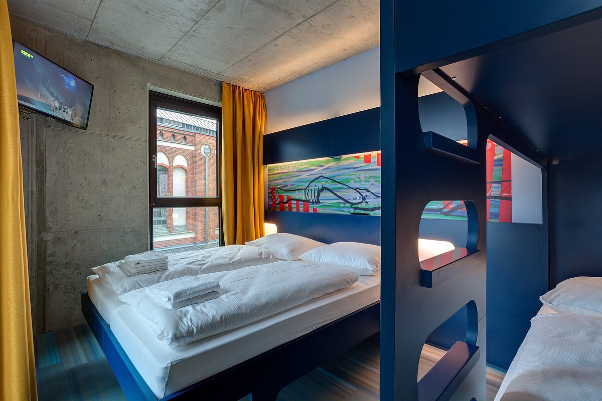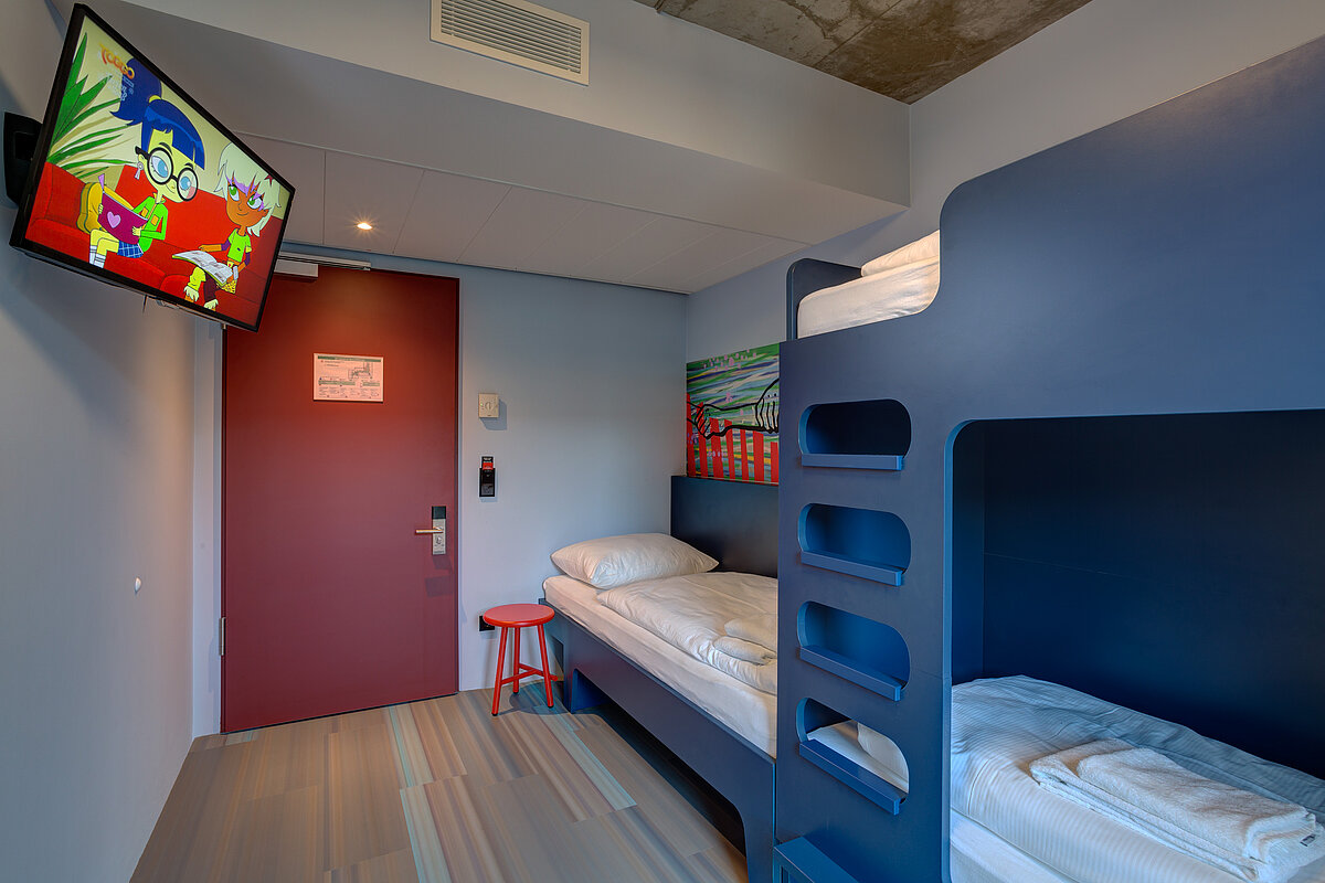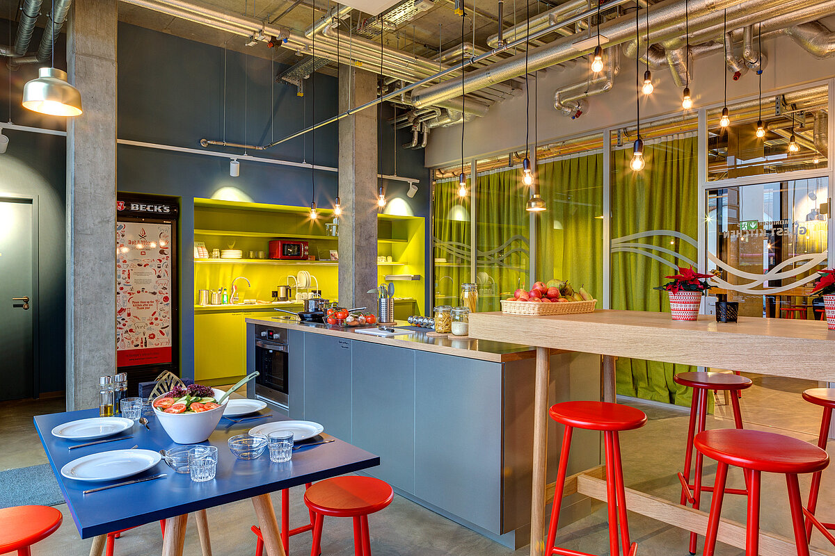 Ook gezinnen met een kleiner reisbudget kunnen in de meerpersoonskamers van het MEININGER Hotel terecht. Dankzij de gastenkeuken, de wasmachine en de flatscreen-tv hoeven ze in elk geval niet aan huiselijk comfort in te boeten.