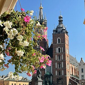 Widok na Rynek Główny i zabytki Krakowa koło hotelu MEININGER Kraków Centrum.